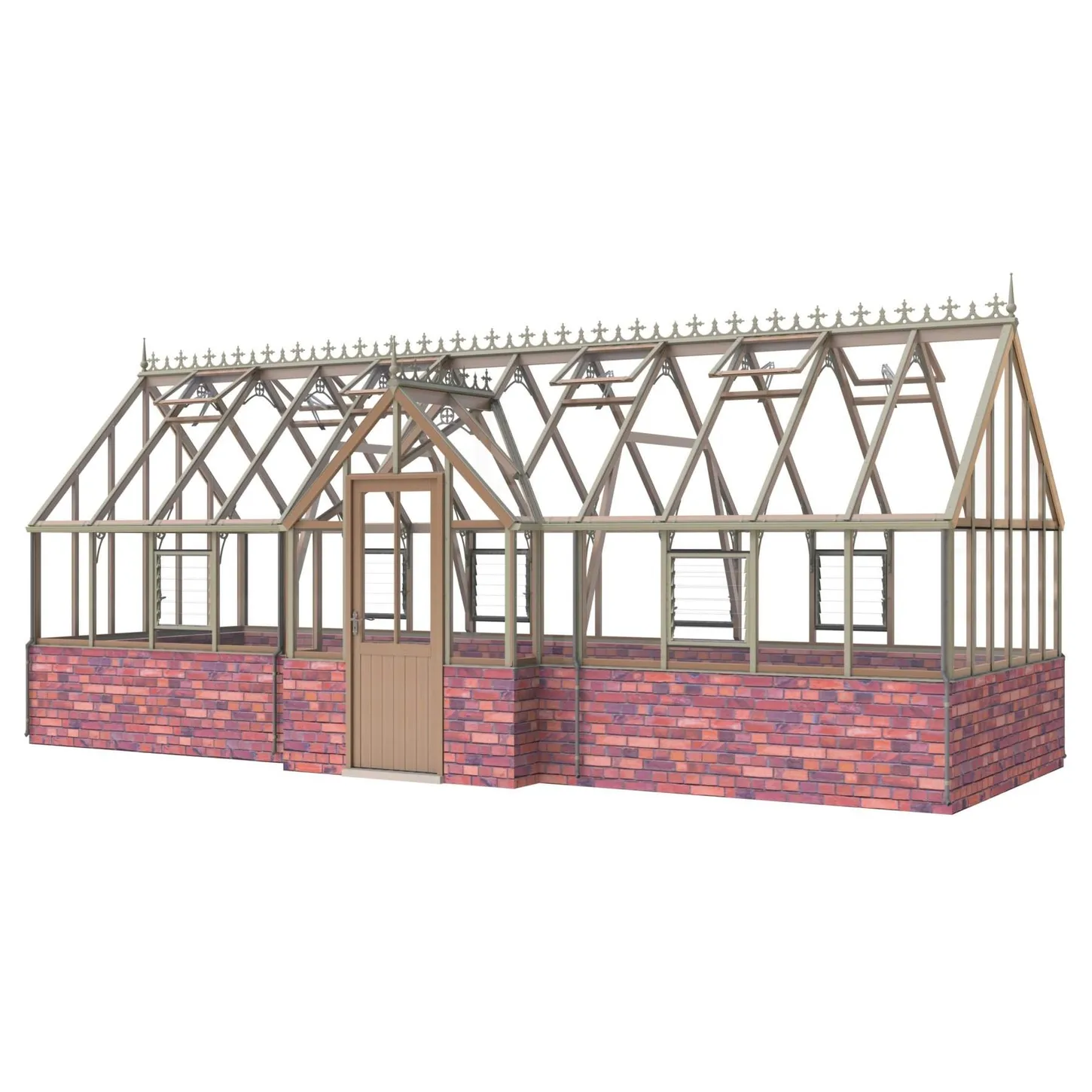 Tuotteet / Kasvihuoneet / Alton FSC setripuiset kasvihuoneet / Alton Elmhurst Cedar tiilimuurilla / Cambridge Cedar täyskorkeilla seinillä, 22,88 m2 kasvihuone