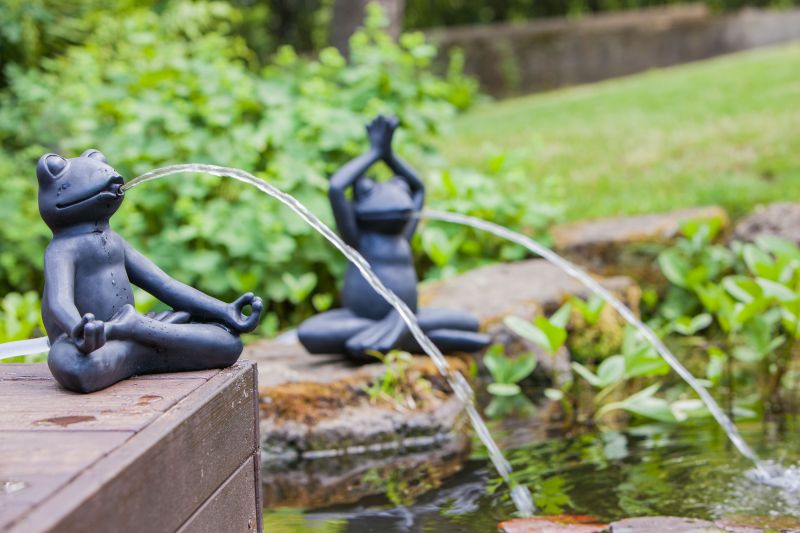 Veikeä Heissnerin suihkulähdepatsas joogaava sammakko.