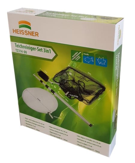 Tuotteet / Vesiaiheet puutarhaan / Vedenhoitotuotteet / Allastarvikkeet / Lammenpuhdistussetti 3in1 Heissner