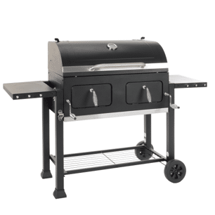 Hiiligrilli XXL:ssä on isokokoinen grillausala 79,5 x 42 cm, valurautaiset grillausritilät optimaalisen lämmön saavuttamiseksi, lämpöhylly, tukevat leveät sivuhyllyt, säädettävä hiili/brikettitason korkeus, tuhkankeräyspelti helpottamaan tyhjentämisessä, kannessa lämpömittari, rungossa ilmaventtiilit vedon säätämistä varten ja alataso tarvikkeille.