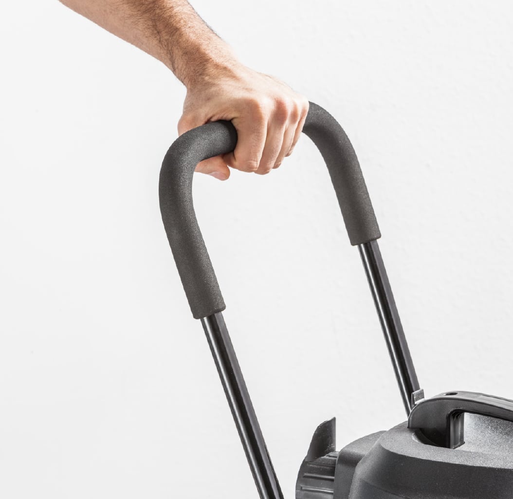 • 4 putkea; 3 suutinta; 7,5 m imuletku; suuret pyörät ja kahva; lisävarusteiden säilytystila