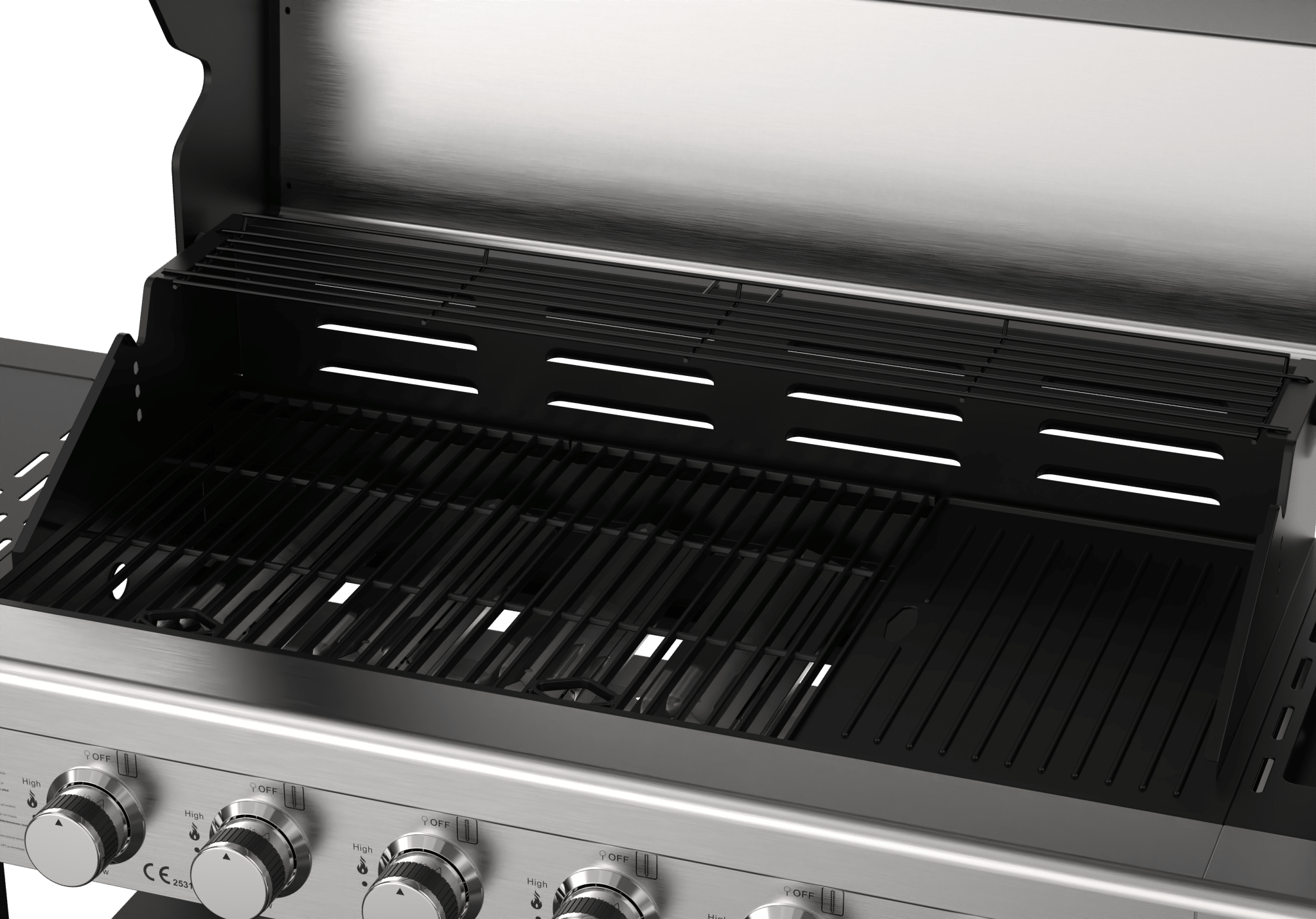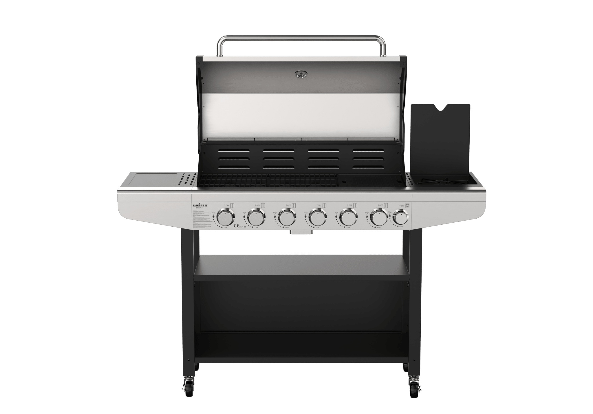 Brant-6+1 on uusi tulokas Lucifer-perheessä. Grillissä on kaksi suurta hyllyä, jossa tarvikkeet säilyvät siististi. Grillin kaksoiskupu ja etupaneeli ovat kestävää ruostumatonta terästä, sivutasot ja vaunu korkealaatuista pulverimaalattua metallia. Grillin suuri paistopinta-ala muodostuu valurautaparilasta ja -ritilästä. Sivukeittimen ansiosta valmistat keitokset