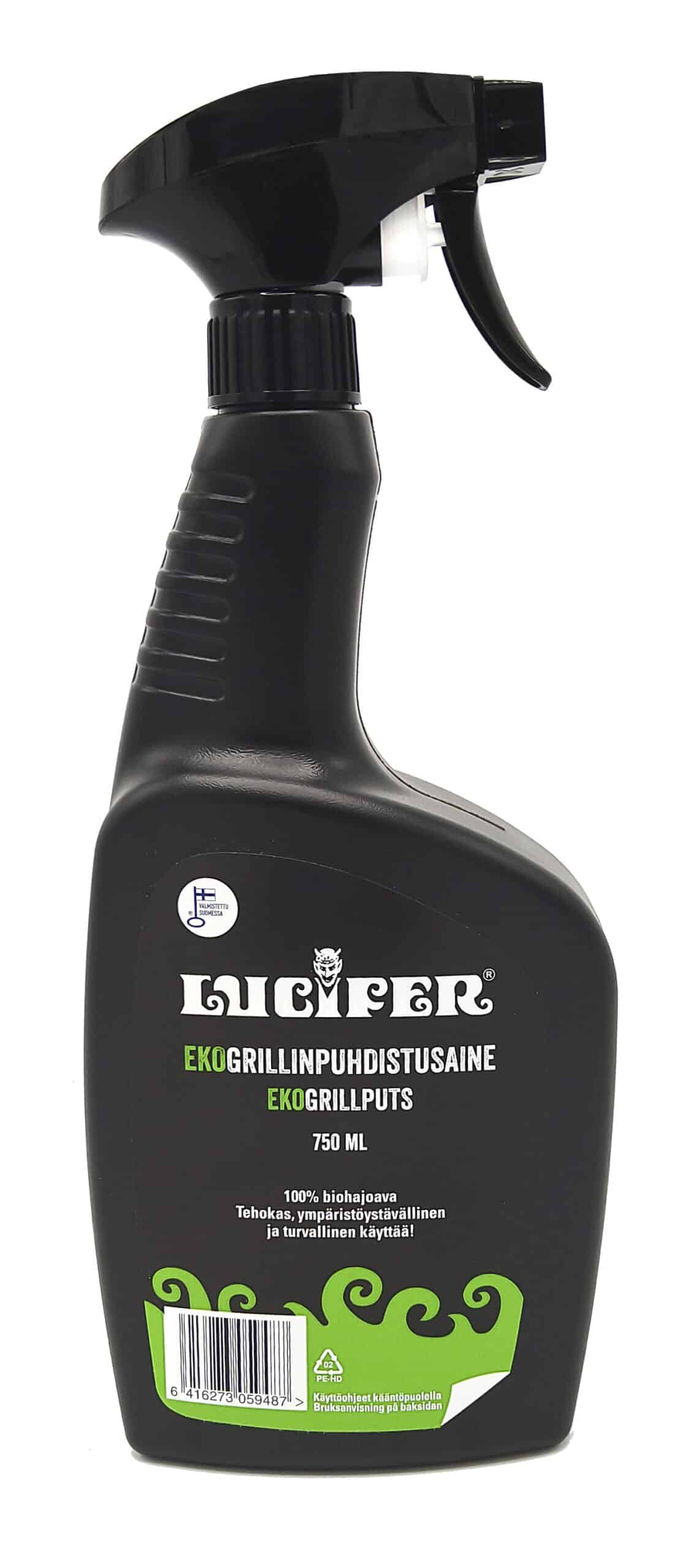 Lucifer Eko Grillinpuhdistusaine on kotimainen, Suomessa valmistettu, nopeasti biohajoava ja tehokas puhdistusaine. Grillinpuhdistusaine tehoaa pinttyneeseenkin rasvaan ja vaikuttaa erittäin nopeasti uuden ekologisen patentoidun tehoaineen ansiosta. Puhdistusaine on turvallinen käyttää myös ruoanvalmistustasojen, ritilöiden, pariloiden ja välineiden puhdistukseen. Grillinpuhdistusainetta voi käyttää kaikkien pintojen puhdistamiseen, puusta metalliin ja aine soveltuu myös rosterille.