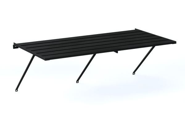 Tukeva alumiinirunko on helppo koota ja asentaa. Hyllyssä on 6 tukevaa alumiinisälettä, ja hyllyn leveys edesauttaa monipuolista käyttöä.