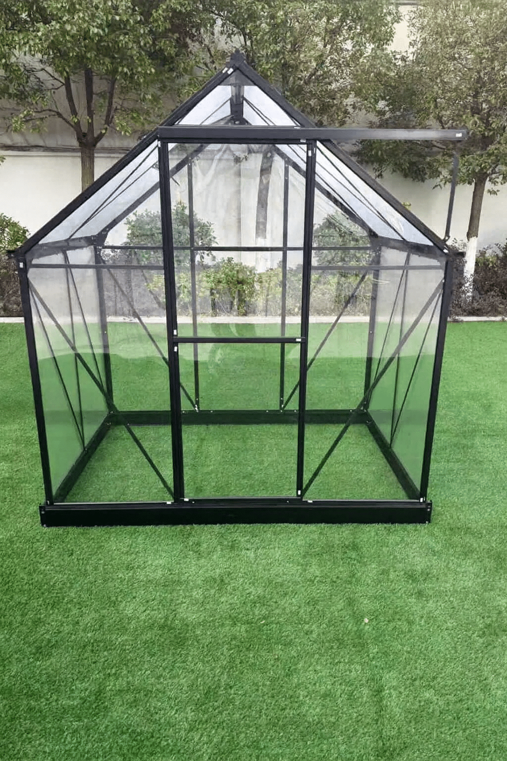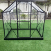 Etu- ja takapäädyt: Kristallinkirkasta, UV-suojattua 0,5 mm polykarbonaattia, jossa on lähes 100 % valonläpäisykyky. Näin ollen kasvihuoneeseen on helppo nähdä sisälle, mikä helpottaa kasvien kasvun ja veden tarpeen havainnoimista. Tästä johtuen tämä lasitusyhdistelmä takaa parhaat kasvuolosuhteen kasveille.
