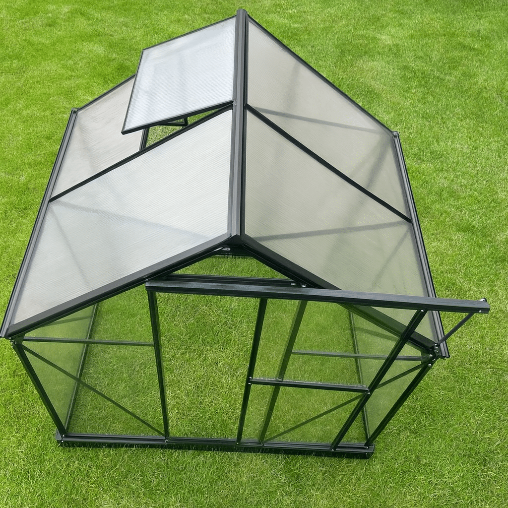 • Seinät ja katto: 4 mm UV-suojattua polykarbonaattikennolevyä