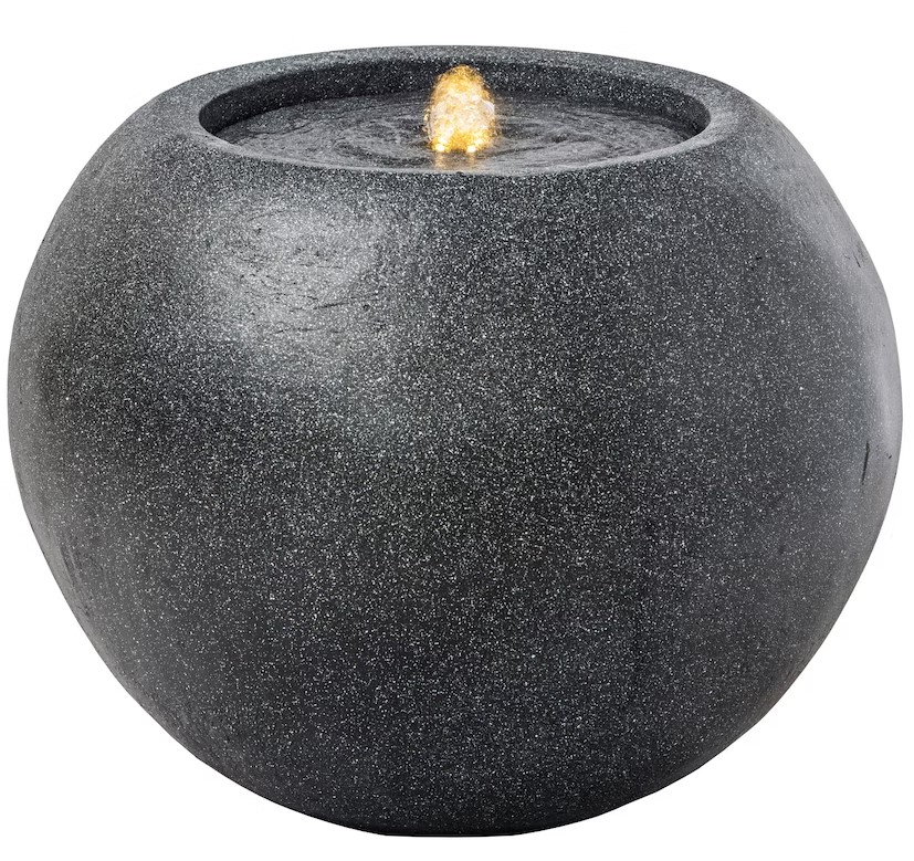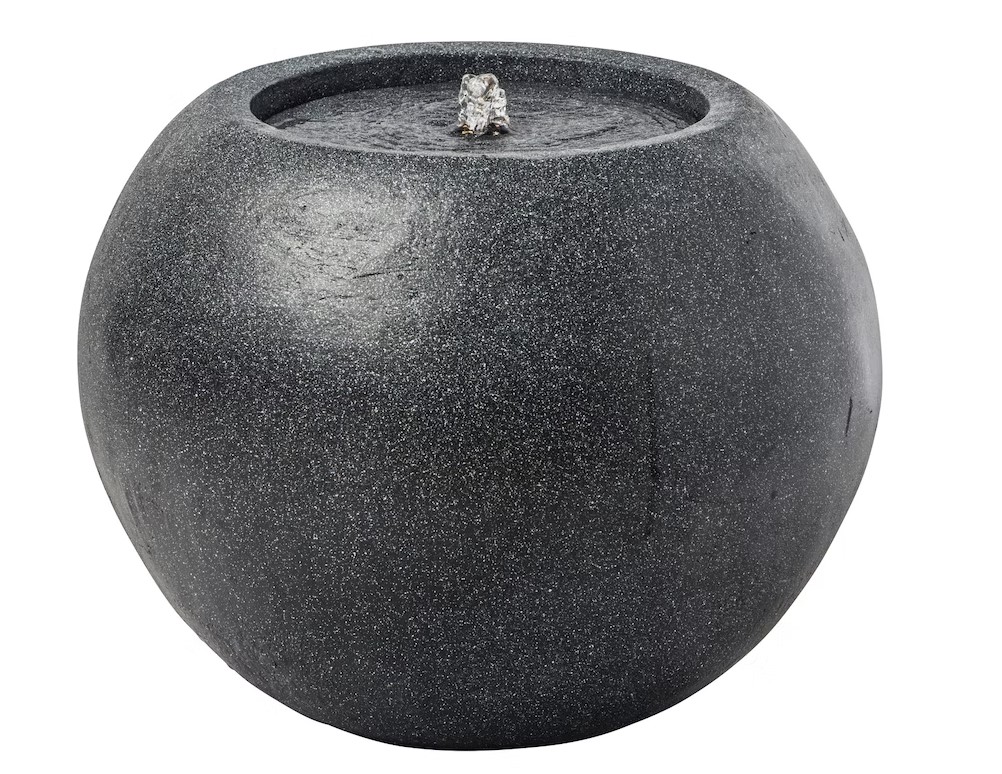 Moderni pallonmuotinen suihkulähde, joka sisältää pumpun ja tarvikkeet. Helppo asentaa ei vaadi kaivamista.