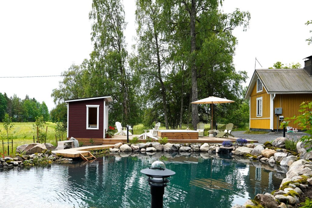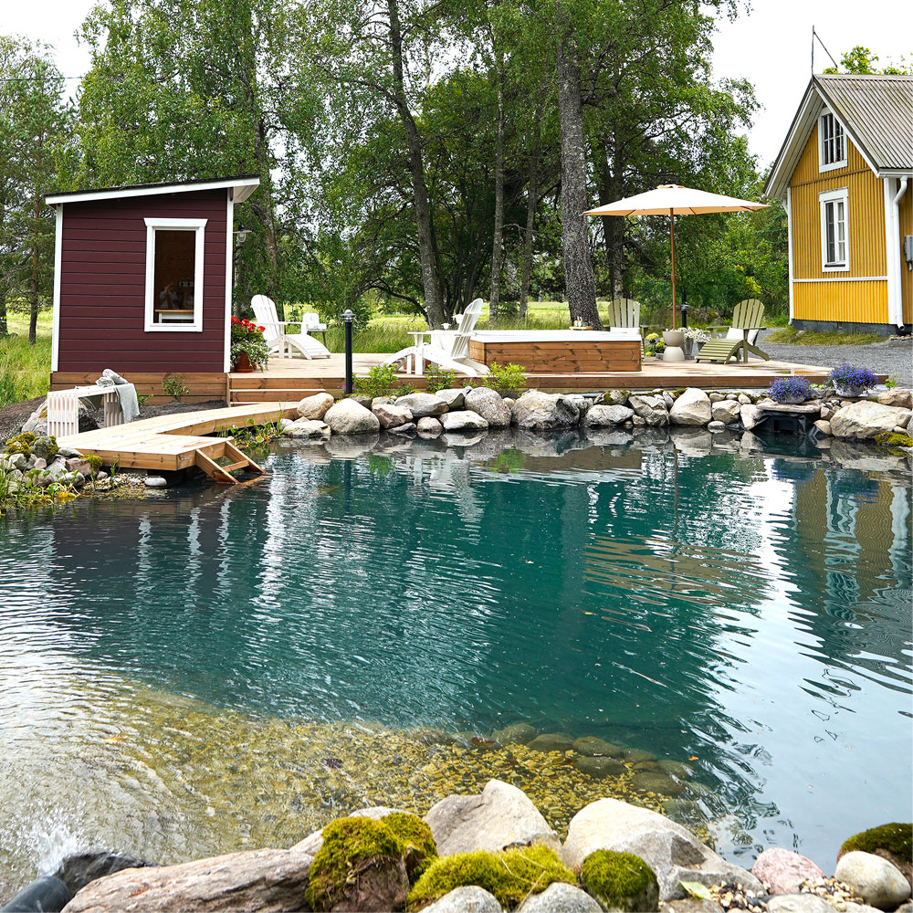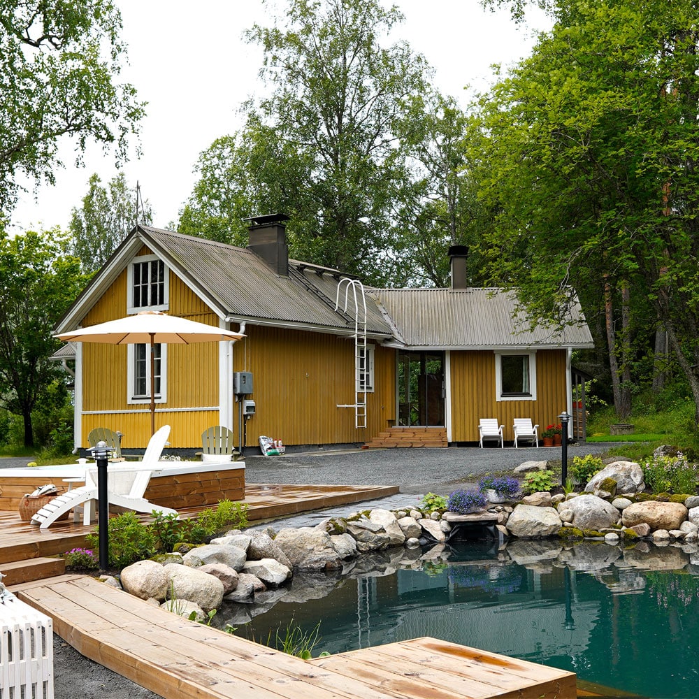 Kesäpaikassa on usein jotain sellaista, johon liittyy muistoja, tuttuja rutiineja, pitkiä kesäpäiviä ja yhteisiä hetkiä läheisten kanssa. Kun mökillä vietetään perheen ja ystävien kanssa aina pitkä kesäloma, myös pihan merkitys kasvaa. Anna-Maija Tuokko toivoi ympäristöstä monimuotoisempaa ja elämyksellisempää. Monen kuivanmaan mökin omistajan tavoin hänen haaveensa kiteytyi yhteen toiveeseen: omaan uimamahdollisuuteen pihapiirissä.