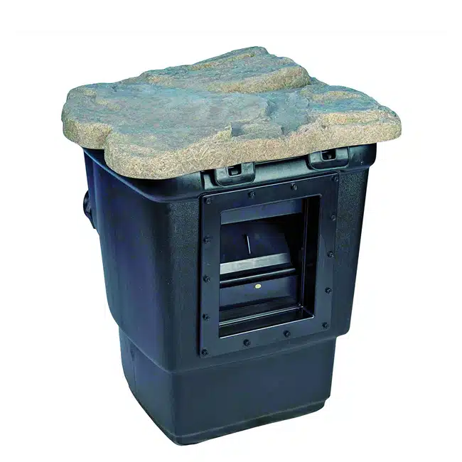 Jotta vesi kiertää tehokkaasti suodatusjärjestelmän läpi ja mahdolliset puro- tai vesiputousratkaisut toimivat halutulla tavalla, tarvitaan oikein mitoitettu pumppu. Anna-Maijan kohteessa tähän tehtävään valittiin FIAP Aqua Active 12 V 12000 -puropumppu.